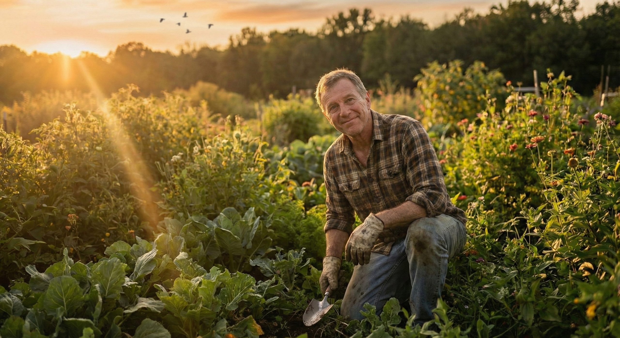 Look closely at the image of the gardener above. He is kneeling in the dirt, bathed in the amber glow of the setting sun. His jeans are stained, his gloves are worn, and he is surrounded by a chaotic abundance of green. But look at his face. The expression isn’t one...